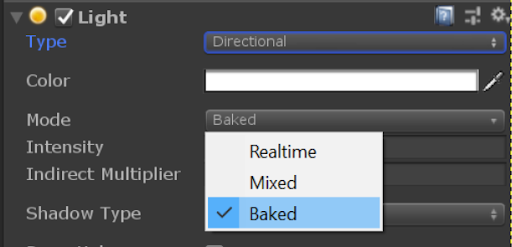 Figure 2. The light’s Mode setting in Unity.